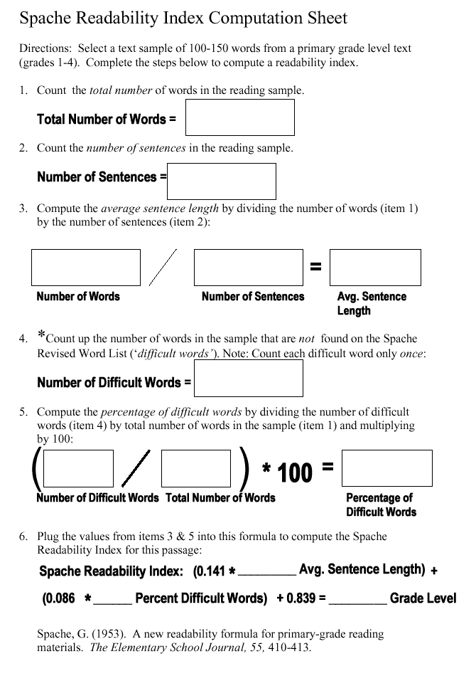 Close Window View Spache 'Difficult Word' Rules >> Close Window View Spache 'Difficult Word' Rules >>